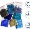 2. Znajdź woreczek z kryształkami w odpowiednim kolorze. Delikatnie go otwórz (tylko uważaj żeby nie rozsypać diamencików… są naprawdę małe). Przesyp troszkę koralików (nie wszystkie) na dołączoną do zestawu tackę. Potrząśnij nią teraz delikatnie, przez co kamyczki ułożą się zaokrągloną stroną ku górze, ułatwiając tym samym ich przyklejanie.