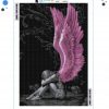 Anioł Haft Diamentowy diamond painting mozaika 5D różowe skrzydła 60x40cm