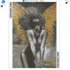 Duży Haft diamentowy diamond painting mozaika Anioł skrzydła złote 60x40cm