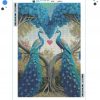 Duży Haft diamentowy diamond painting mozaika niebieski paw natura 60x40cm