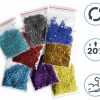 2. Znajdź woreczek z kryształkami w odpowiednim kolorze. Delikatnie go otwórz (tylko uważaj żeby nie rozsypać diamencików… są naprawdę małe). Przesyp troszkę koralików (nie wszystkie) na dołączoną do zestawu tackę.  Potrząśnij nią teraz delikatnie, przez co kamyczki ułożą się zaokrągloną stroną ku górze, ułatwiając tym samym ich przyklejanie.