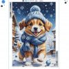 Świąteczny Haft Diamentowy duży 60x40cm Diamond Painting szczeniak w śniegu