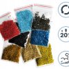 2. Znajdź woreczek z kryształkami w odpowiednim kolorze. Delikatnie go otwórz (tylko uważaj żeby nie rozsypać diamencików… są naprawdę małe). Przesyp troszkę koralików (nie wszystkie) na dołączoną do zestawu tackę.  Potrząśnij nią teraz delikatnie, przez co kamyczki ułożą się zaokrągloną stroną ku górze, ułatwiając tym samym ich przyklejanie.